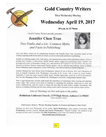 Gold Country Writers Third Wednesday Meeting Wednesday April 19, 2017 10 a.m. to 12 Noon 6