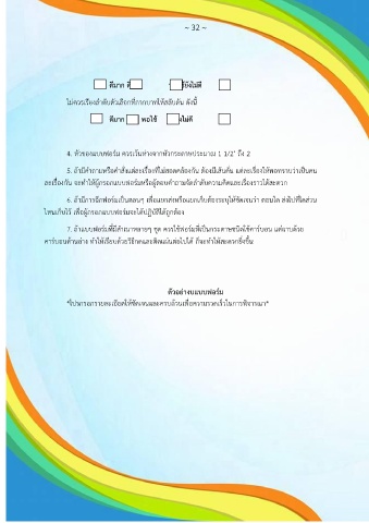 5. ถ้ามีค าถามหรือค าสั่งแต่ละเรื่องที่ไม่สอดคล้องกัน ต้องมีเส้นคั่น แต่ละเรื่องให้พอทราบว่าเป็นคน