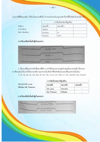 2.ในกรณีที่ชื่อสกุลเดี่ยว ให้ถือเป็นหน่วยที่หนึ่ง อักษรย่อก็จะเรียงอยู่ก่อนค าอื่นๆที่ขึ้นต้นตัวอักษรเดียวกัน