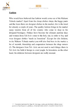 wear designer clothes “made in Jerusalem”. Except for elite fashion,