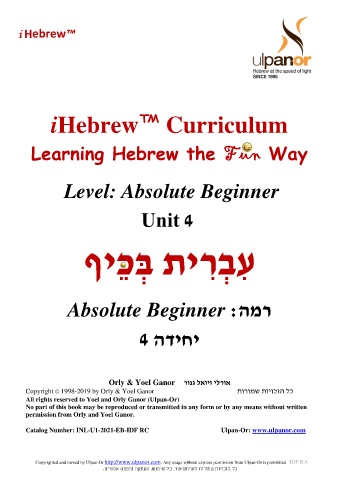 Catalog Number: INL-U1-2021-EB-IDF RC Ulpan-Or: www.ulpanor.com