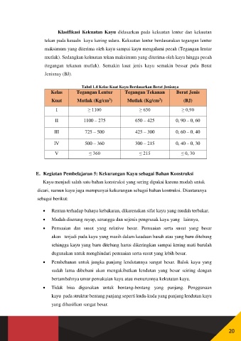 Tabel 1.4 Kelas Kuat Kayu Berdasarkan Berat Jenisnya