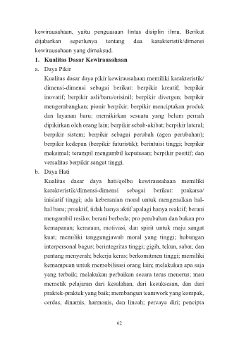 Kualitas dasar daya pikir kewirausahaan memiliki karakteristik/