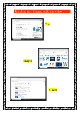 Searching text, images, audio and video Text Images Videos