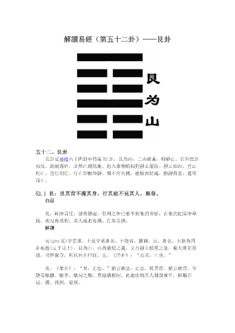 52.1 艮:艮其背不獲其身,行其庭不見其人。無咎。