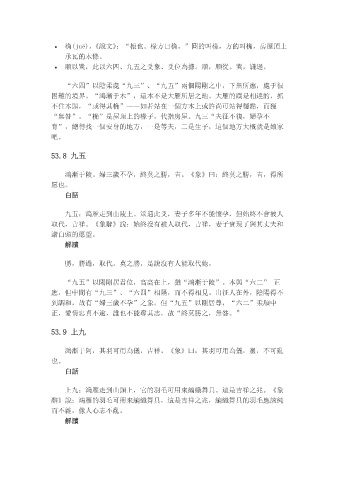 上九:鴻雁走到山頭上,它的羽毛可用來編織舞具。這是吉祥之兆。《象