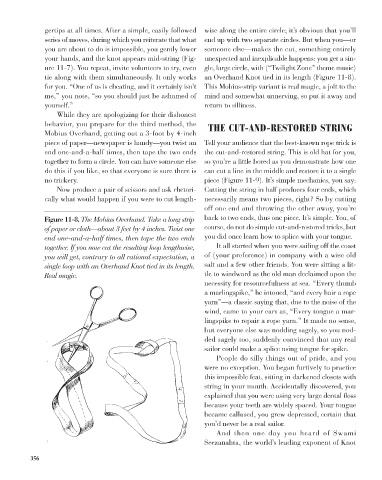 of paper or cloth—about 3 feet by 4 inches. Twist one course, do not do simple cut-and-restored tricks, but