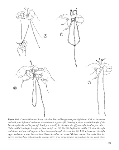 Figure 11-9. Cut-and-Restored String. Middle a line and hang it over your right hand. Pick up the nearer