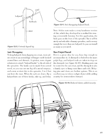 solution is to attach “halyard hooks” to the aft side of the sheerpole (see Figure 12-10). Hauling parts can