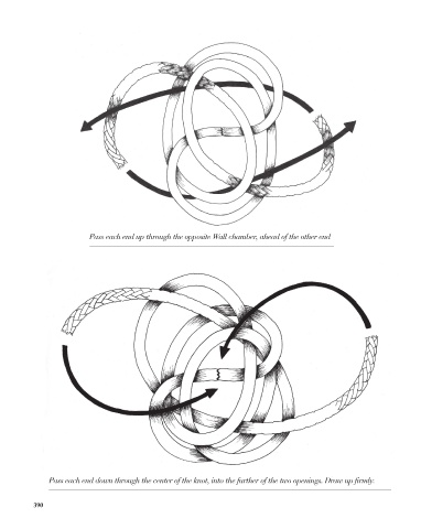 Pass each end up through the opposite Wall chamber, ahead of the other end Pass each end down through the center of the knot, into the further of the two openings. Draw up firmly. 390
