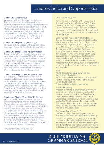 Drama, Music, Visual Art), Sports Science, and our St udent L eadership