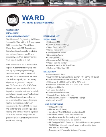 Ward Pattern & Engineering (WPE) was WOOD SHOP