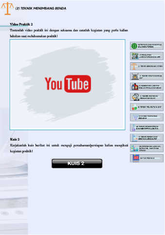 Video Praktik 2 Tontonlah video praktik ini dengan seksama dan catatlah kegiatan yang perlu kalian lakukan saat melaksanakan praktik! Kuis 2 Kerjakanlah kuis berikut ini untuk menguji pemahaman/persiapan kalian mengikuti kegiatan praktik!