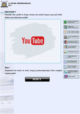 Video Praktik 3 Tontonlah video praktik ini dengan seksama dan catatlah kegiatan yang perlu kalian lakukan saat melaksanakan praktik! Kuis 3 Kerjakanlah kuis berikut ini untuk menguji pemahaman/persiapan kalian mengikuti kegiatan praktik!