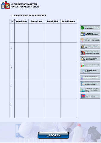 b. IDENTIFIKASI BAHAN PENCUCI No Nama bahan Rumus kimia Bentuk Fisik Simbol Bahaya 1 2 3 4 5