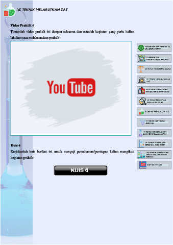 Video Praktik 6 Tontonlah video praktik ini dengan seksama dan catatlah kegiatan yang perlu kalian lakukan saat melaksanakan praktik! Kuis 6 Kerjakanlah kuis berikut ini untuk menguji pemahaman/persiapan kalian mengikuti kegiatan praktik!