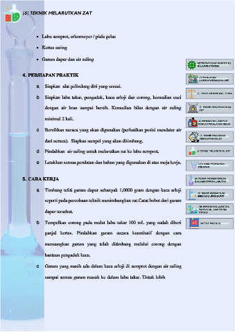 d. Pindahkan air suling untuk melarutkan zat ke labu semprot.