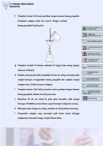 i. Tuangkan larutan CaO hasil pencucian secara perlahan dengan bantuan