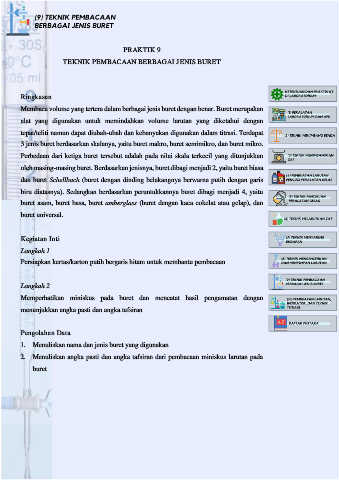 Membaca volume yang tertera dalam berbagai jenis buret dengan benar. Buret merupakan