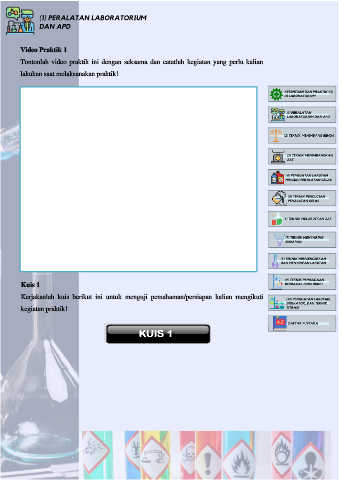 Video Praktik 1 Tontonlah video praktik ini dengan seksama dan catatlah kegiatan yang perlu kalian lakukan saat melaksanakan praktik! Kuis 1 Kerjakanlah kuis berikut ini untuk menguji pemahaman/persiapan kalian mengikuti kegiatan praktik!