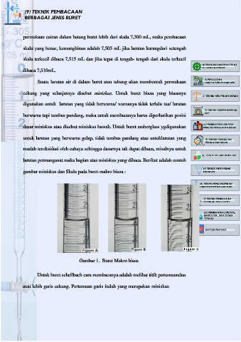 permukaan cairan dalam batang buret lebih dari skala 7,500 mL, maka pembacaan