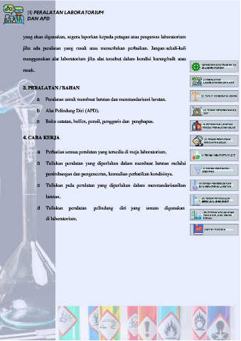yang akan digunakan, segera laporkan kepada petugas atau pengawas laboratorium