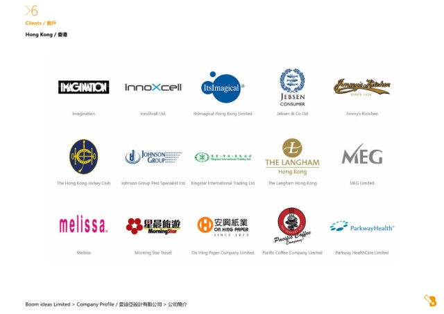 6 Clients / 客戶 Hong Kong / 香港 Boom ideas Limited > Company Profile / 愛迪亞設計有限公司 > 公司簡介