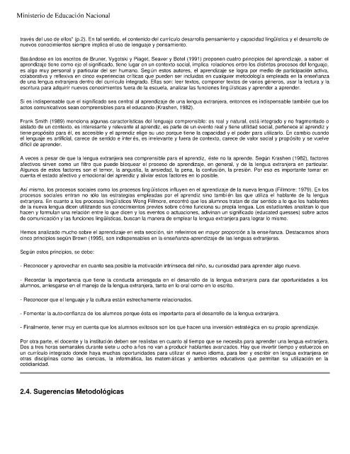 través del uso de ellos" (p.2). En tal sentido, el contenido del currículo desarrolla pensamiento y capacidad lingüística y el desarrollo de