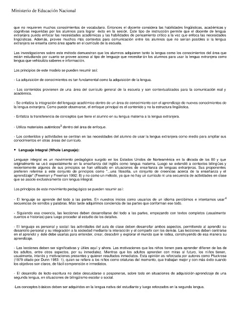 aprendizaje" (Freeman y Freeman 1992: 8) y no como un método, ya que no hay un currículo ni una secuencia de actividades en clase