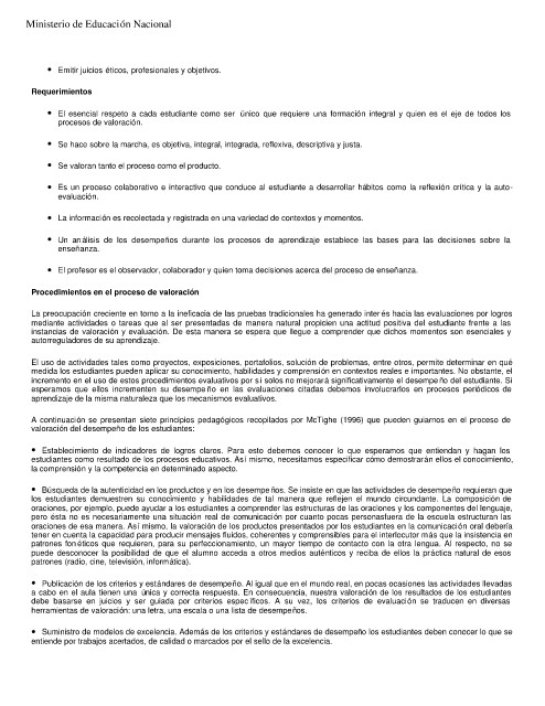 incremento en el uso de estos procedimientos evaluativos por sí solos no mejorará significativamente el desempe ño del estudiante. Si