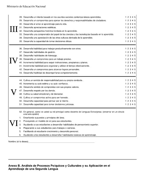 34. Desarrolla una apreciación de las otras culturas derivada de lo aprendido. 1 2 3 4 5