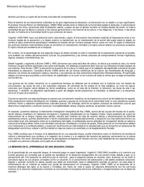 En el aprendizaje de una segunda lengua, la memoria juega un papel importante. Vygots-ki (1932/1993) considera a la memoria una