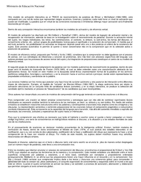 conocimiento anterior, etc., activan grupos de posibilidades l éxicas para el significado o la selección de comprensión. A medida que el