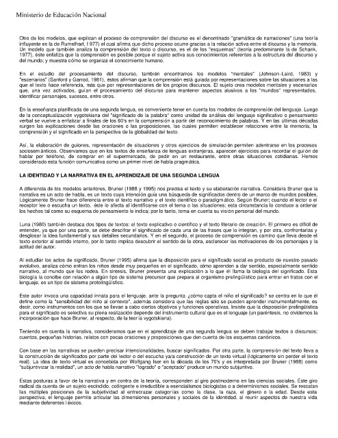 A diferencia de los modelos anteriores, Bruner (1988 y 1995) nos precisa el texto y su elaboración narrativa. Considera Bruner que la