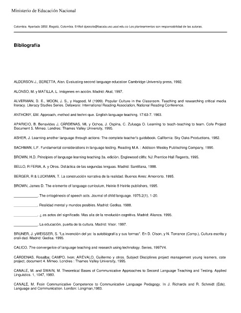 Colombia. Apartado 3852, Bogotá, Colombia. E-Mail dpsicolo@bacata.usc.uoal.edu.co Los planteamientos son responsabilidad de las autoras.