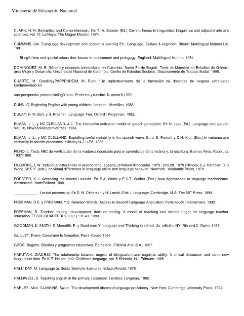 CUMMINS, Jim. "Language development and academia learning En : Language, Culture & cognition. Bristol: Multilingual Matters Ltd,