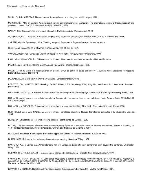 NUSSBAUM, LUCÍ "Aprender a Aprender lenguas en la educación primaria", en: Revista SIGNOS Año 4, Número 8/9, 1993.