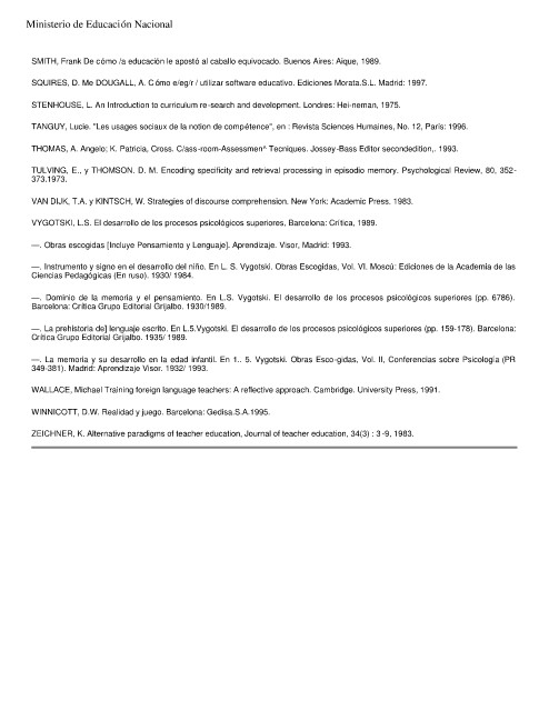 VYGOTSKI, L.S. El desarrollo de los procesos psicológicos superiores, Barcelona: Crítica, 1989.