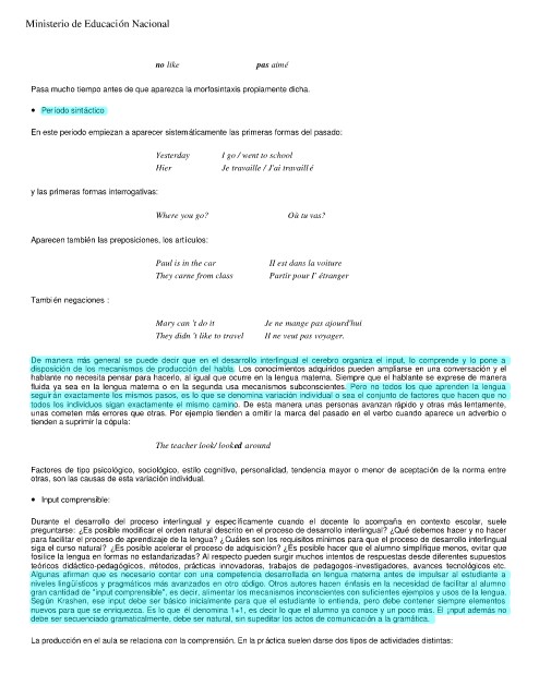 nuevos para que se enriquezca. Es lo que él denomina 1+1, es decir lo que el alumno ya conoce y un poco más. El ¡nput además no