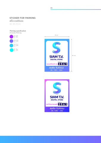 3A STICKER FOR PARKING สติ๊กเกอรติดรถ Size : 68 x 90 mm. Printing specification 4 Colors Printing 68 mm. C 61 R153 M 77 G51 Y 0 B255 K 0 C 70 R 102 M 64 G 102 Y 0 B 255 K 0 C 67 R 51 M 35 G 153 Y 0 B 255 K 0 C52 R0 M0 G255 Y13 B255 K0 90 mm.