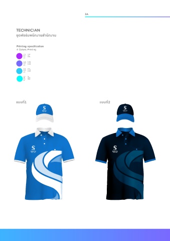 3A TECHNICIAN ชุดฟอรมพนักงานสํานักงาน Printing specification 4 Colors Printing C 61 R153 M 77 G51 Y 0 B255 K 0 C 70 R 102 M 64 G 102 Y 0 B 255 K 0 C 67 R 51 M 35 G 153 Y 0 B 255 K 0 C52 R0 M0 G255 Y13 B255 K0 แบบที่1 แบบที่2