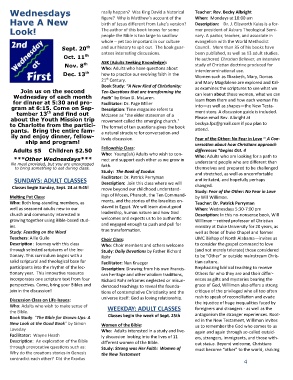 Adults $5 Children $2.50 Fellowship Class: differences *begins Oct. 4