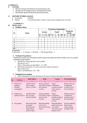 b. Rubrik Melakukan Gerakan Kombinasi Permainan Berjalan Merangkak dan Berlari.