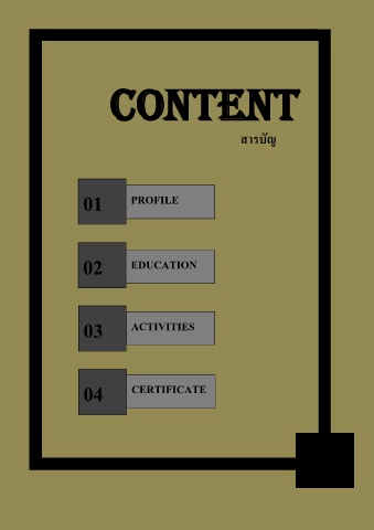 CONTENT สารบัญ 01 PROFILE 02 EDUCATION 03 ACTIVITIES 04 CERTIFICATE