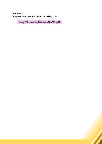 Evaluasi Kerjakan soal evaluasi pada link berikut ini. https://forms.gle/5VzSoyxmZ5zJG1mJ7
