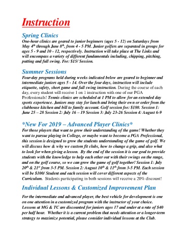 ages 5 - 9 and 10 - 12, respectively. Instruction will take place at The Links and