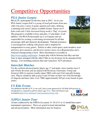 introduction to competitive golf for juniors ages 5-14. More information may