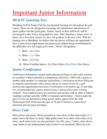 learning tees at Mendham, we believe that our juniors will have the opportunity to