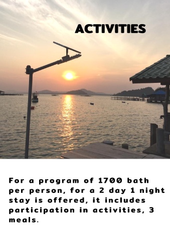 ACTIVITIES F o r a p r o g r a m o f 1 7 0 0 b a t h p e r p e r s o n , f o r a 2 d a y 1 n i g h t s t a y i s o f f e r e d , i t i n c l u d e s p a r t i c i p a t i o n i n a c t i v i t i e s , 3 m e a l s .