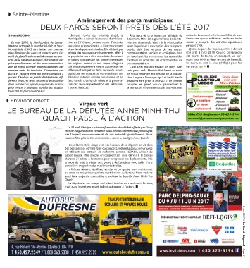 En mai 2016, la Municipalité de Sainte- tion en 2016 avec comme vision d’accorder Martine, résumait la vision de la Municipalité saison, y compris des activités aquatiques